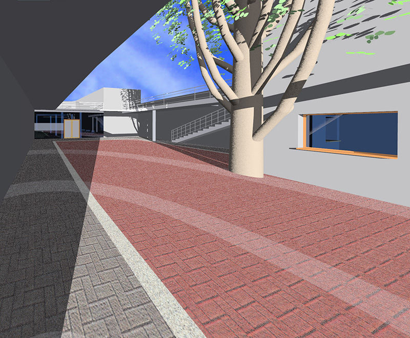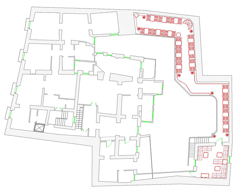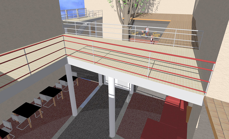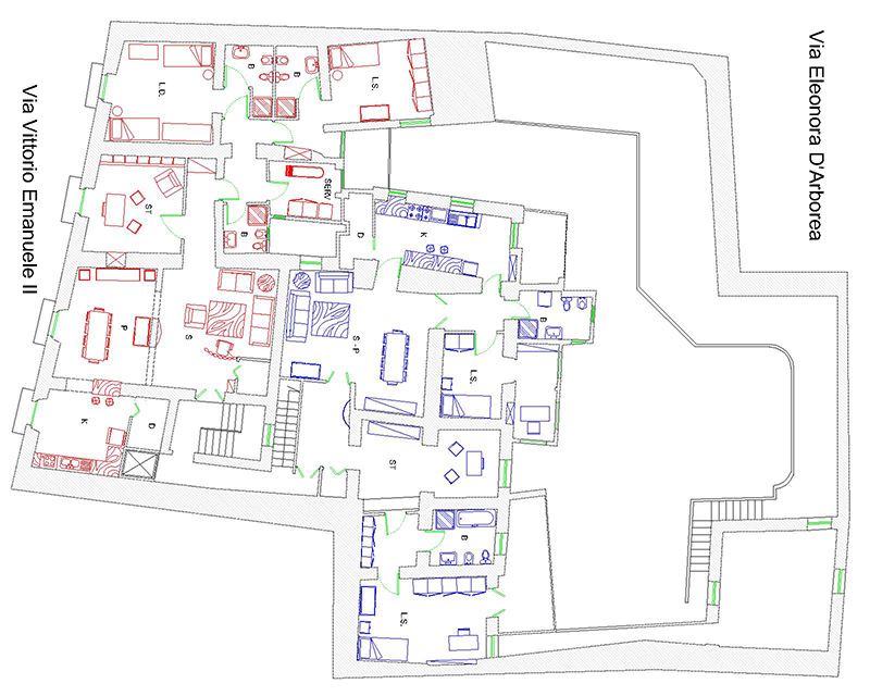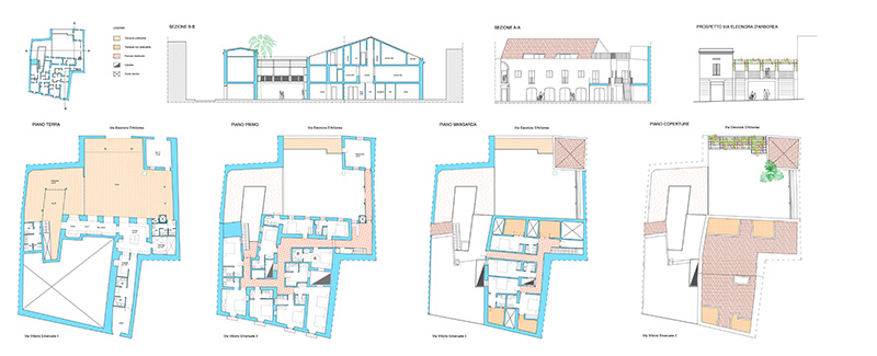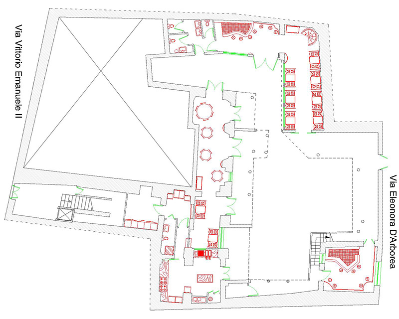 Il progetto architettonico ha quindi proposto una riconversione dell’immobile in albergo nel quale le camere verranno realizzate nei piani primo e mansarda. Il piano terra, previo abbassamento del piano di campagna, sarà destinato a reception e sala colazioni. L’accesso principale verrà invertito rispetto al progetto architettonico attuale, l’albergo vedrà sulla via Eleonora d’Arborea il suo sviluppo principale con l’apertura della corte interna, ora celata da un alto muro. L’ingresso dalla via Ciutadella de Menorca sarà riservato esclusivamente alle operazioni interne ed al personale.