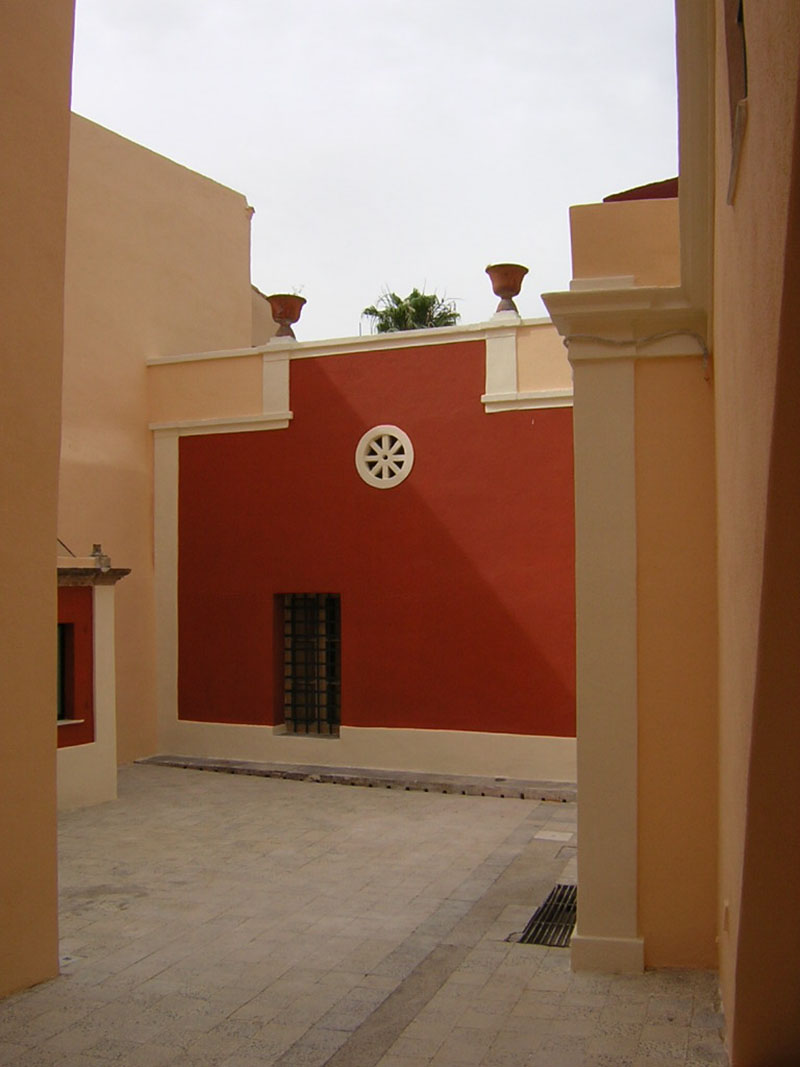 La scalinata in pietra attraverso la quale si accedeva alla corte interna è stata demolita e ricostruita dotandola di un corrimano in ferro lavorato. Gli intonaci della corte interna sono stati demoliti e ricostruiti e le superfici tinteggiate con i colori originari. Tutto il lavoro è stato svolto in stretta sinergia con la Soprintendenza ai Beni Artistici ed Architettonici di Cagliari e Oristano.