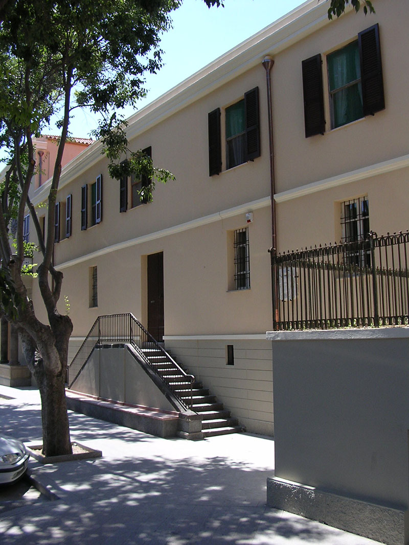 L’intervento ha riguardato preliminarmente la martellinatura e demolizione degli intonaci, la rimozione dei graffiti murali e la pulitura delle superfici marmoree. Successivamente si è dato corso alla ricostruzione dei cornicioni ed alla realizzazione di nuovi canali di gronda in rame e ghisa per la raccolta delle acque meteoriche. I marmi e le pietre, dopo la pulizia ed il trattamento opportuni hanno ripreso finalmente il loro originale colore. Il prospetto è stato interamente tinteggiato mentre la zoccolatura è stata trattata con una vernice speciale antigraffiti.